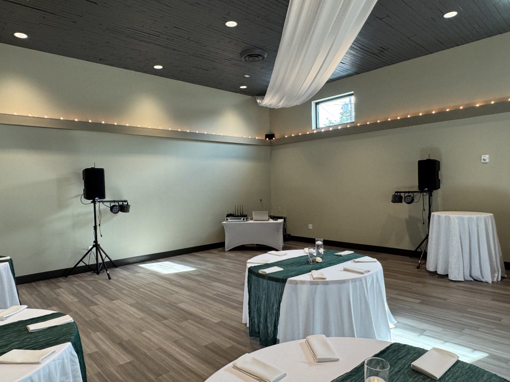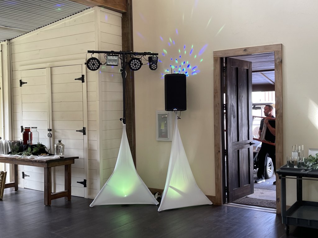 We use Professional Wireless Sound Systems Equipment and Lighting, with a Very Large Music and Karaoke Library.